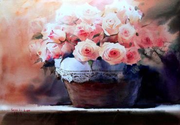 Water color still life painting by one of the world's foremost watercolor artist's. We can create a custom painting for you or select one on the products page to purchase now. These make a beautiful addition to any decor at home or business.
